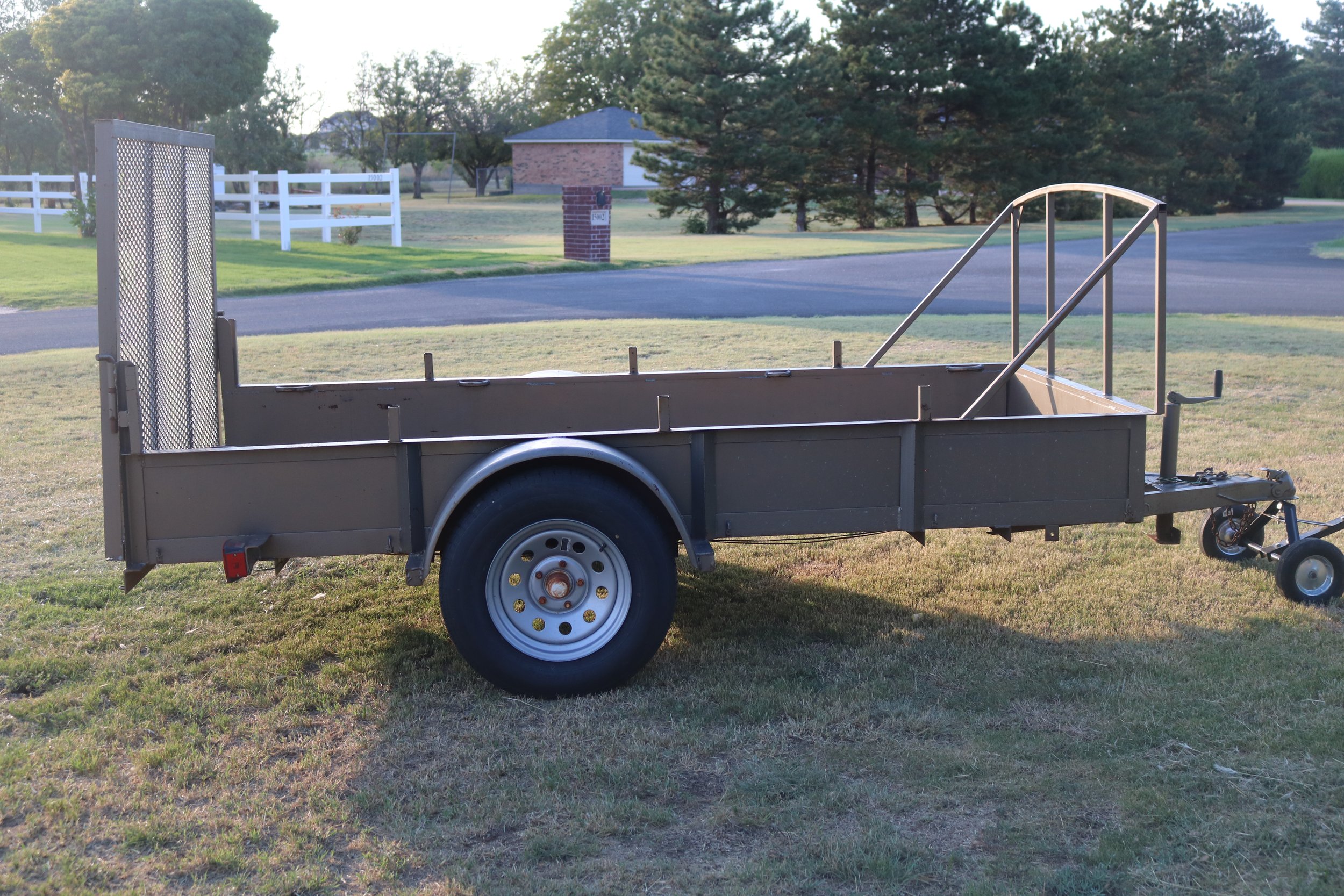 5’x10’ Single axle trailer with ramp. Will supply (4) 1”x15" 1000lb J-Hook ratchet straps. Ideal for moving large items or Motorcycle or side by side or riding lawn mowers.